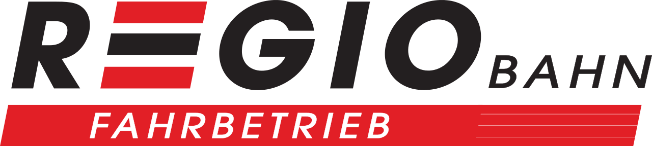 Logo der Regio Bahn mit dem Schriftzug "FAHRBETRIEB" in roter Schrift auf weißem Hintergrund.