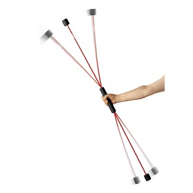 Fitnessgerät mit mehreren gepolsterten Hebeln, platziert in einem Raum mit Fenster und Holzfußboden.