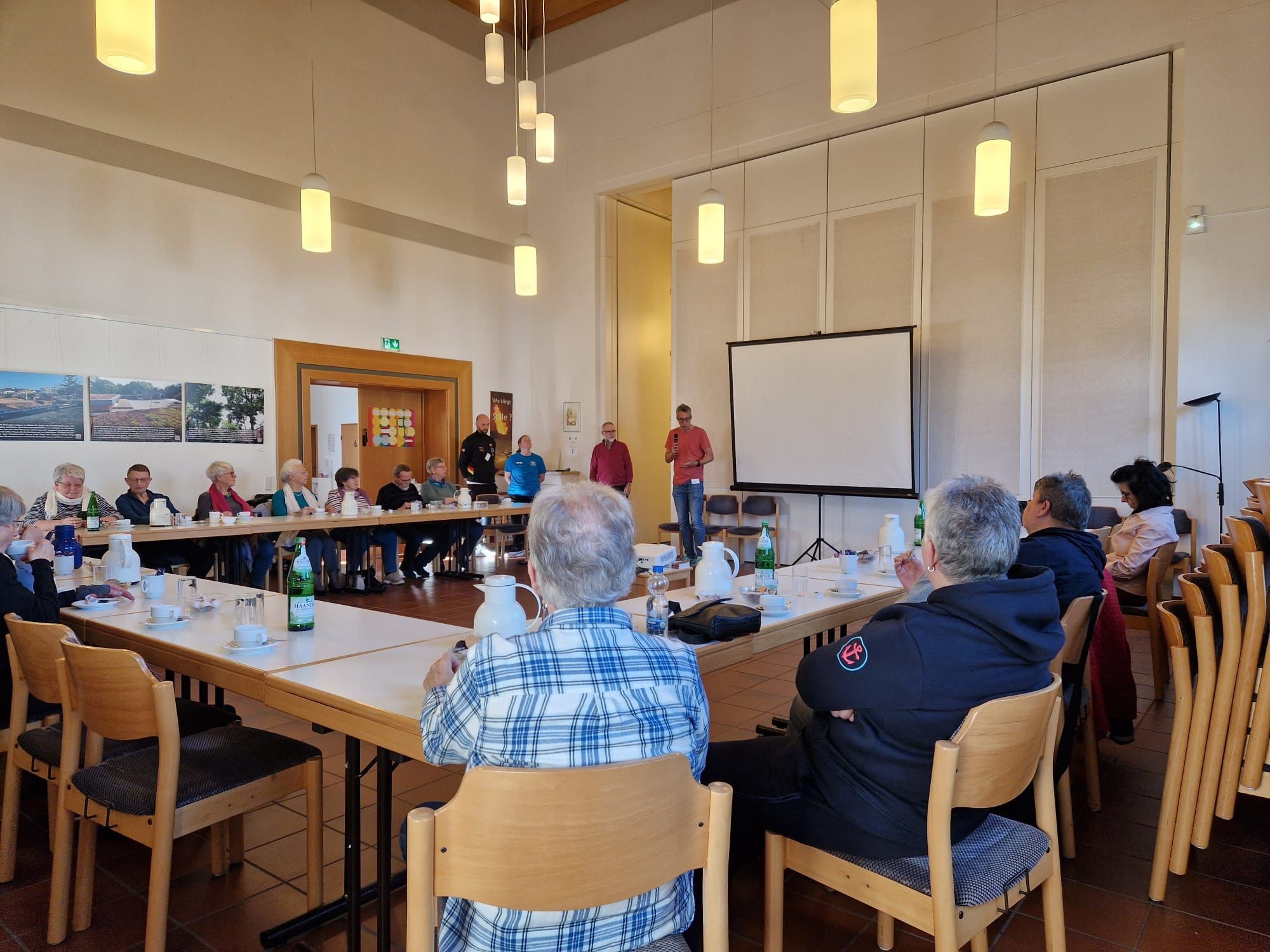Menschen folgen sitzend im Kreis den Worten von Hr. Kober
