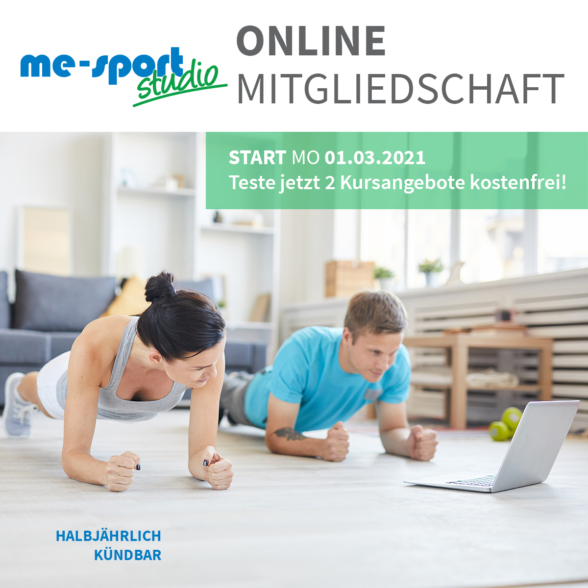 Logo von "me sport" in Blau und Weiß, mit dem Schriftzug "Tradition in der Neanderthalstadt seit 1882".