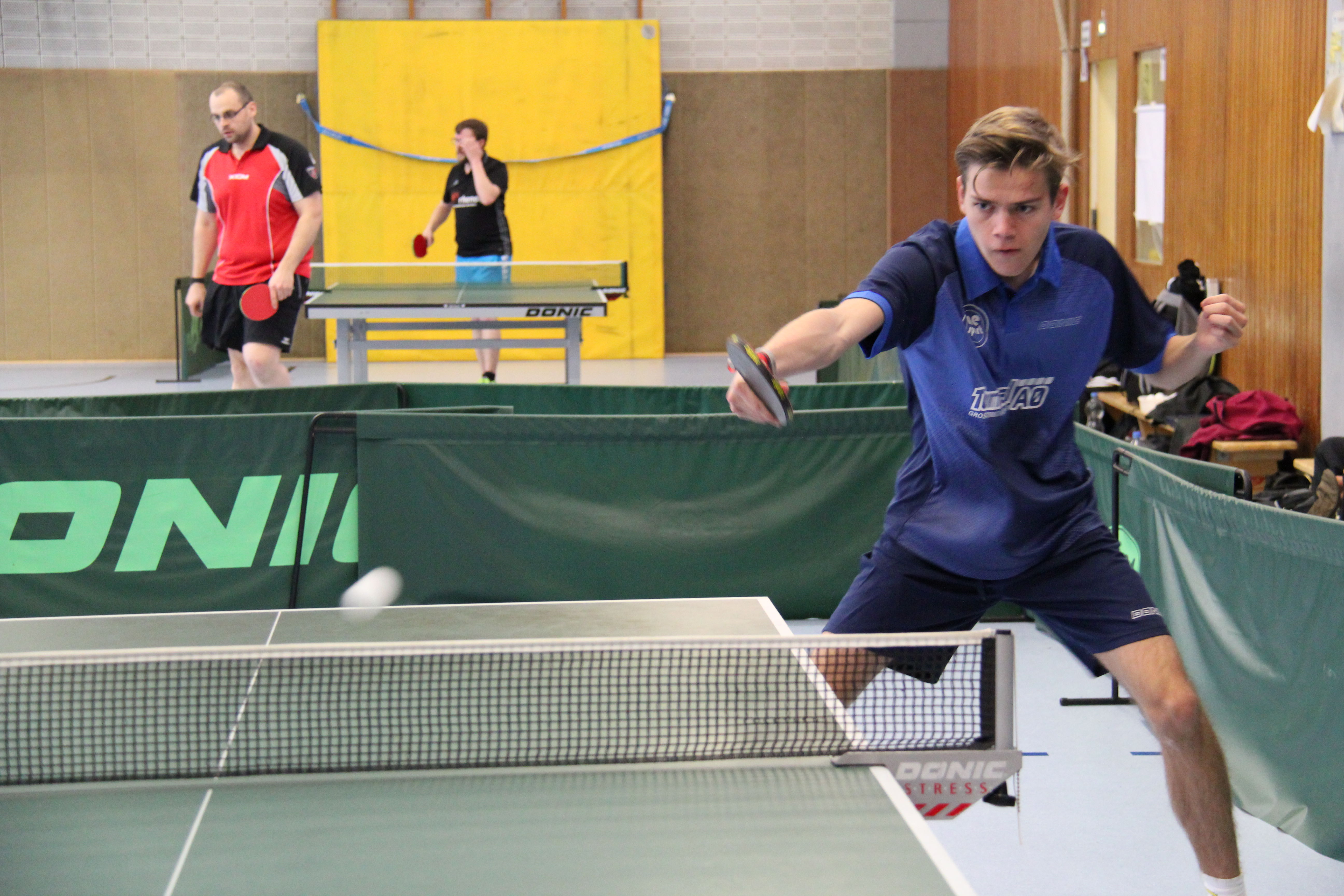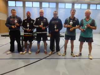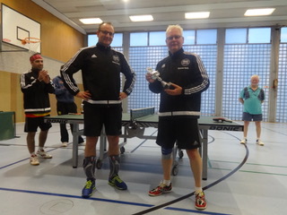 Der Abteilungsvorsitzende Thomas Nolte überreicht dem neuen Vereinsmeister Edgar Höhn Urkunde, Pokal und den Geldpreis.