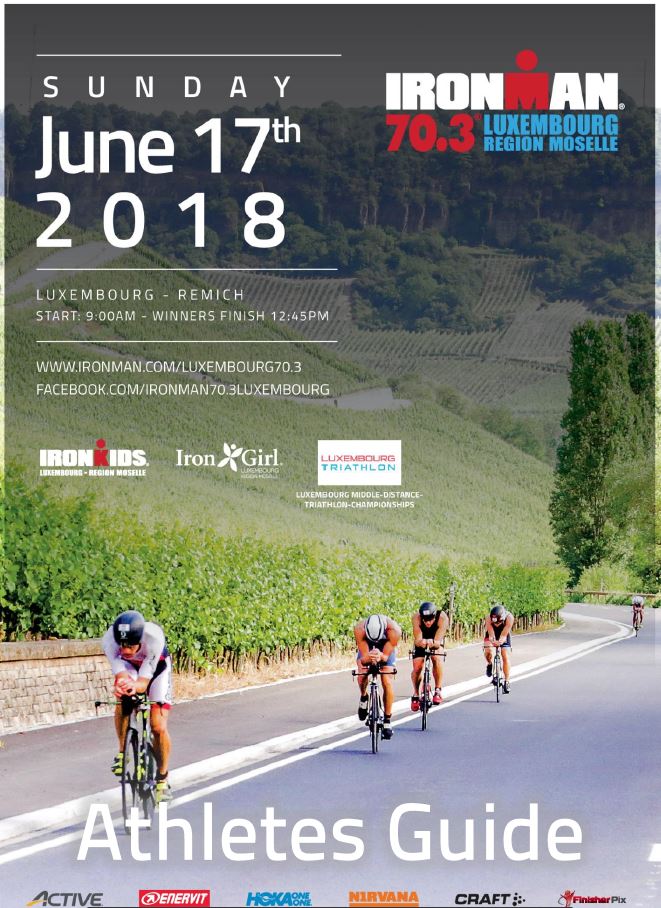 Teilnehmer beim Ironman 70.3 auf einer Straße in Luxemburg, umgeben von Weinbergen, mit einem klaren blauen Himmel.