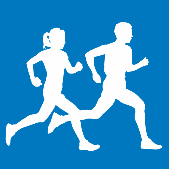 Blauer Hintergrund mit 2 weißen Läufer. Einen männlichen und eine weibliche.
