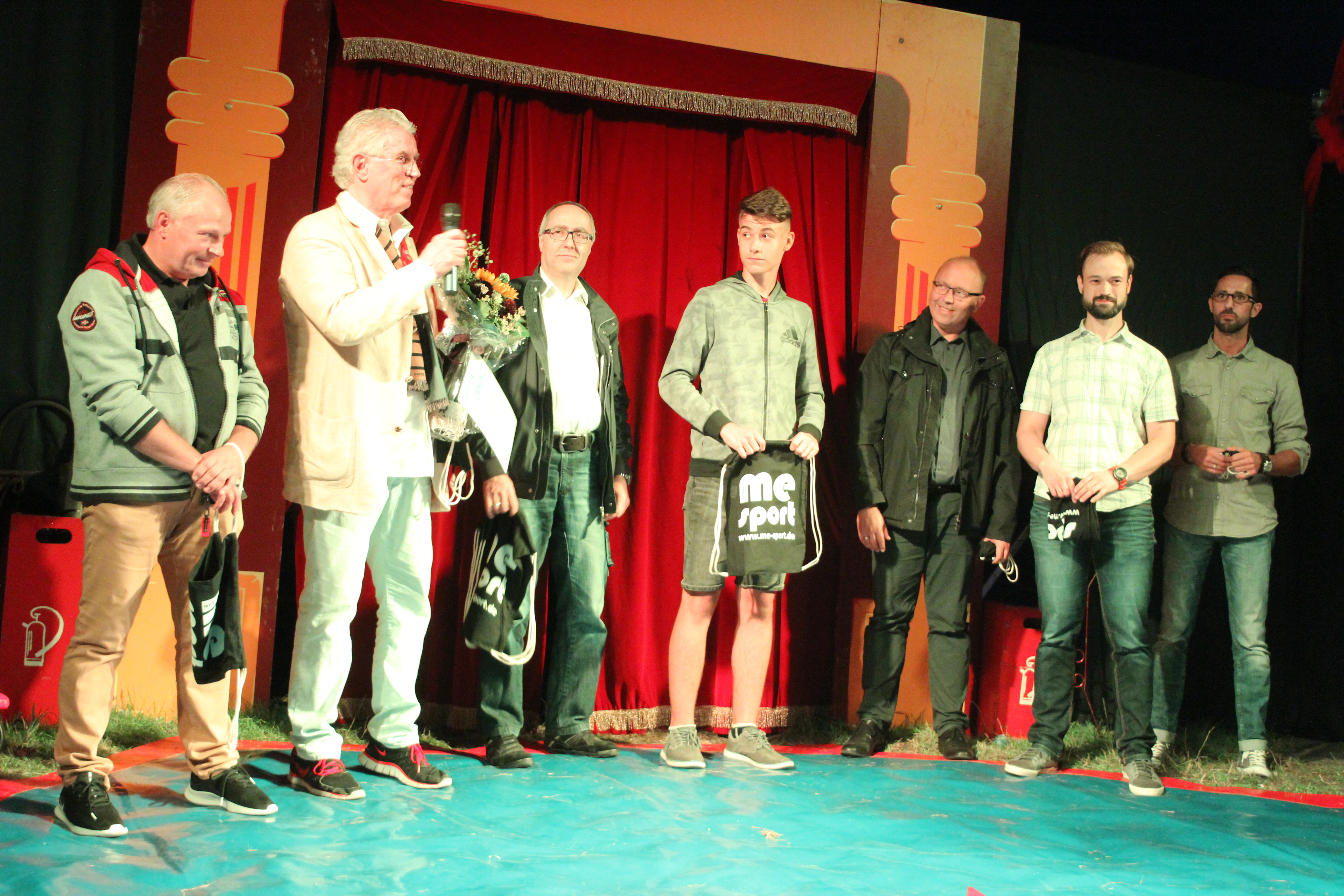 Im Bild: Ehrung von Wolfgang Robrahn (ganz rechts) im Zirkuszelt