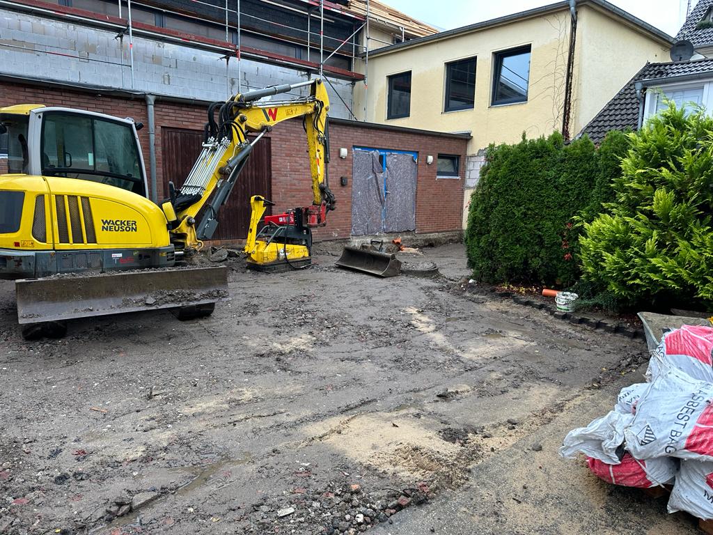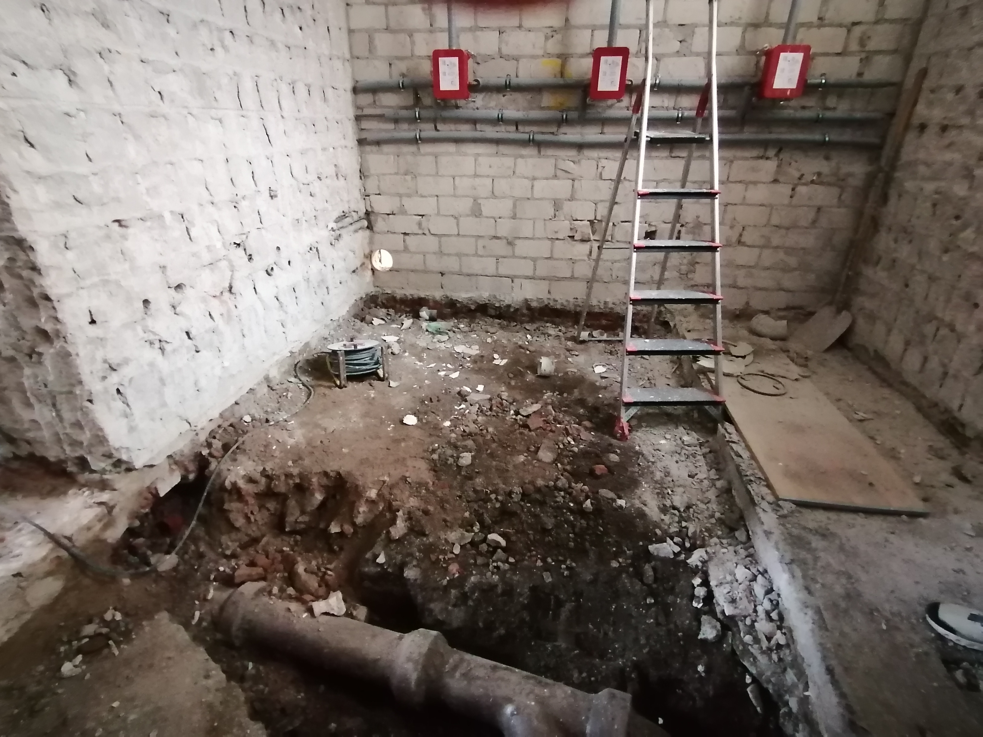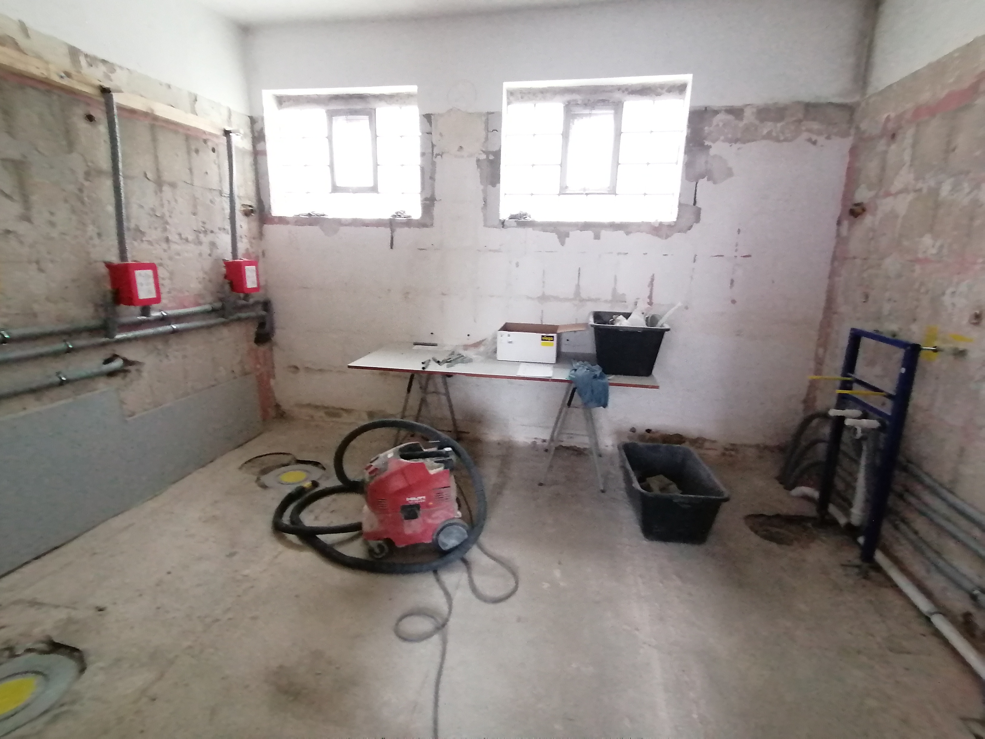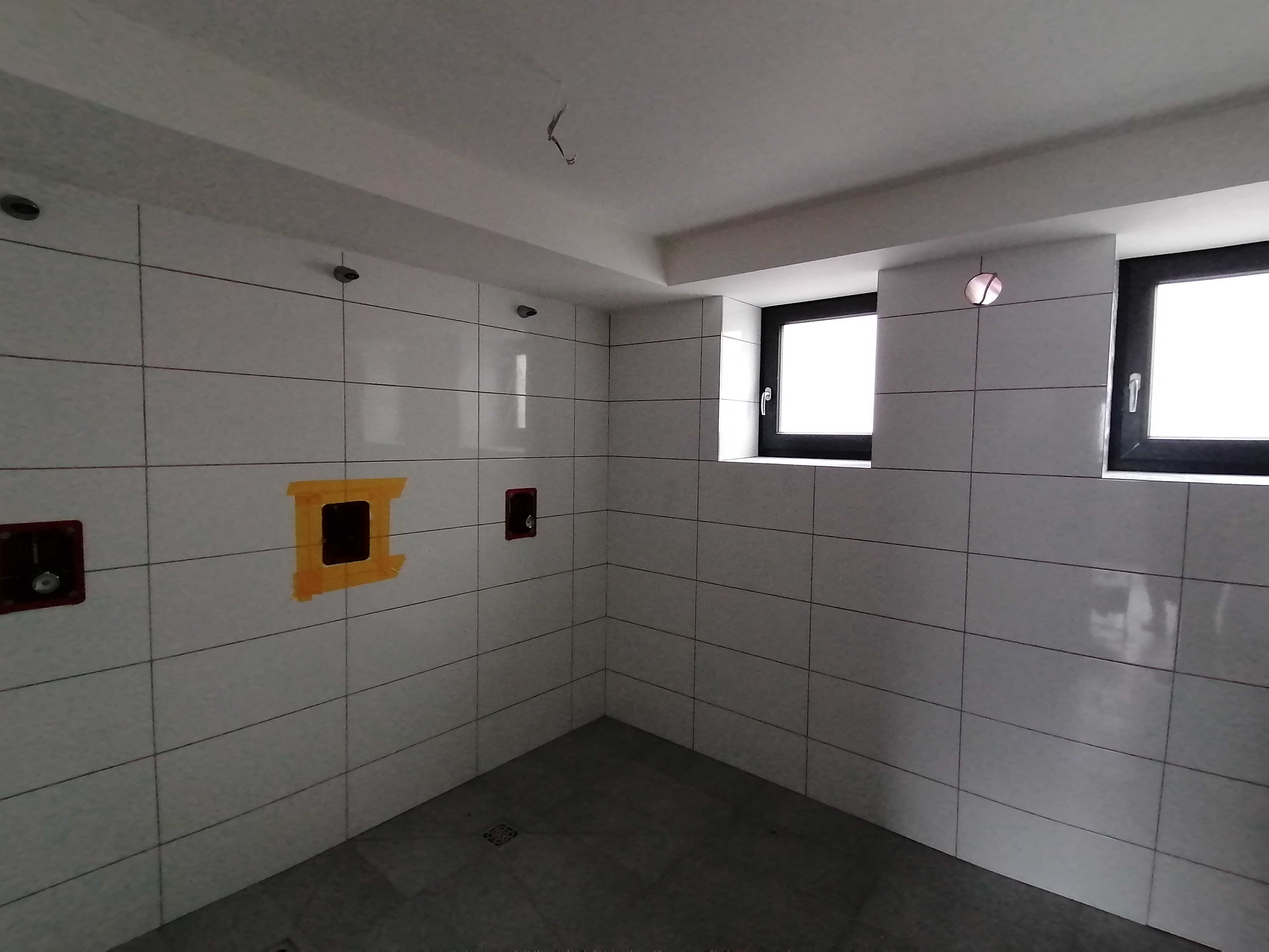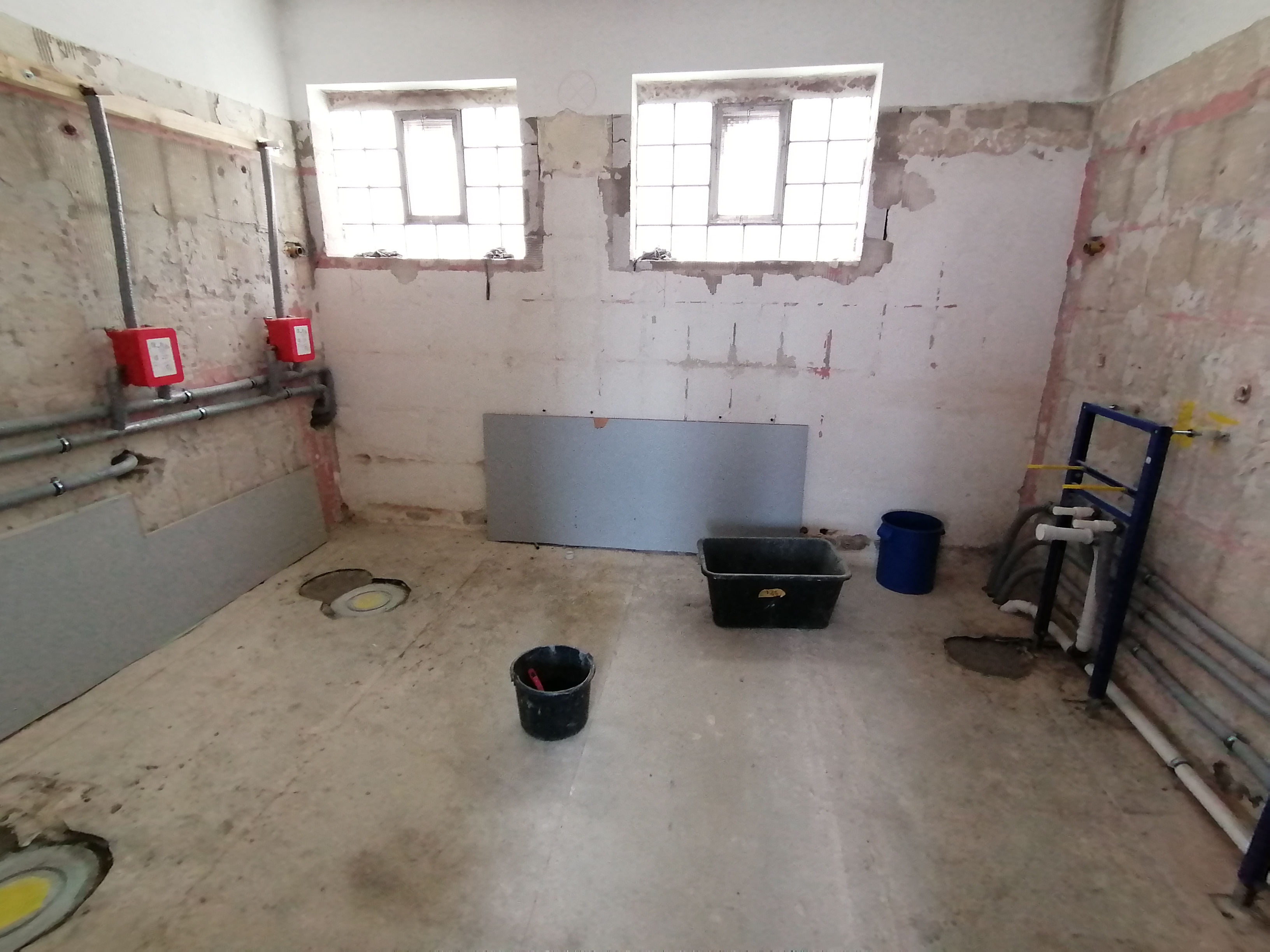 Stand 05.09.2023: Die Lieferung der Materialien dauert leider noch an, so dass die Hallennutzung aktuell nach den Herbstferien geplant ist. Im sanitären Bereich haben die Fliesenarbeiten begonnen.