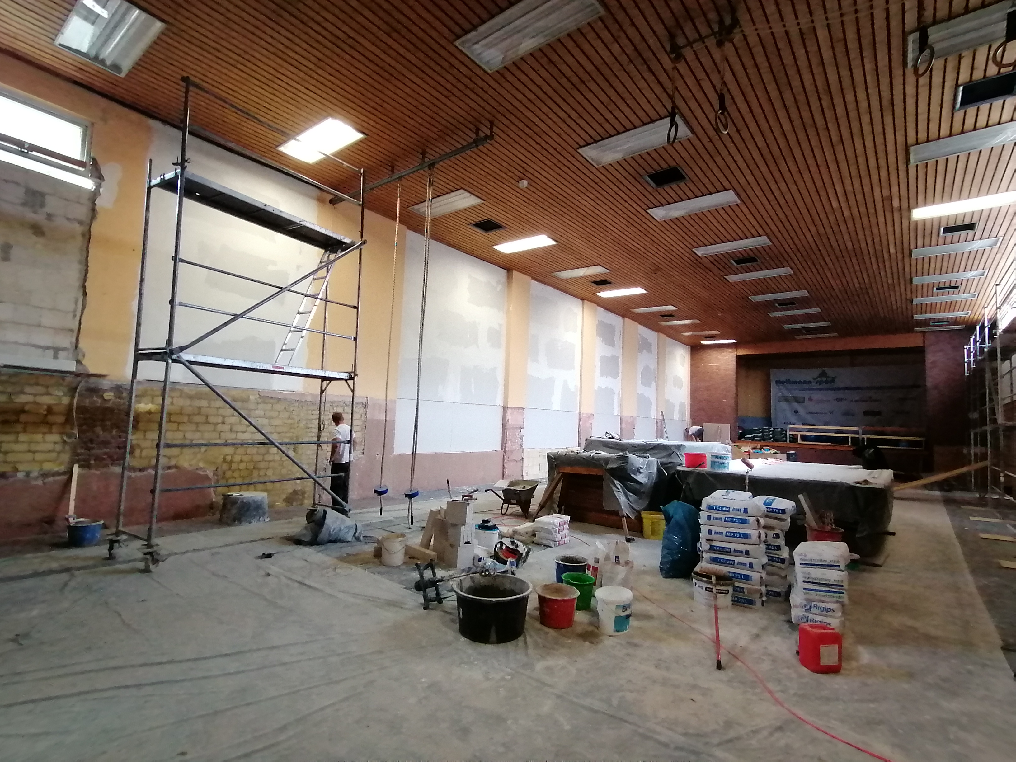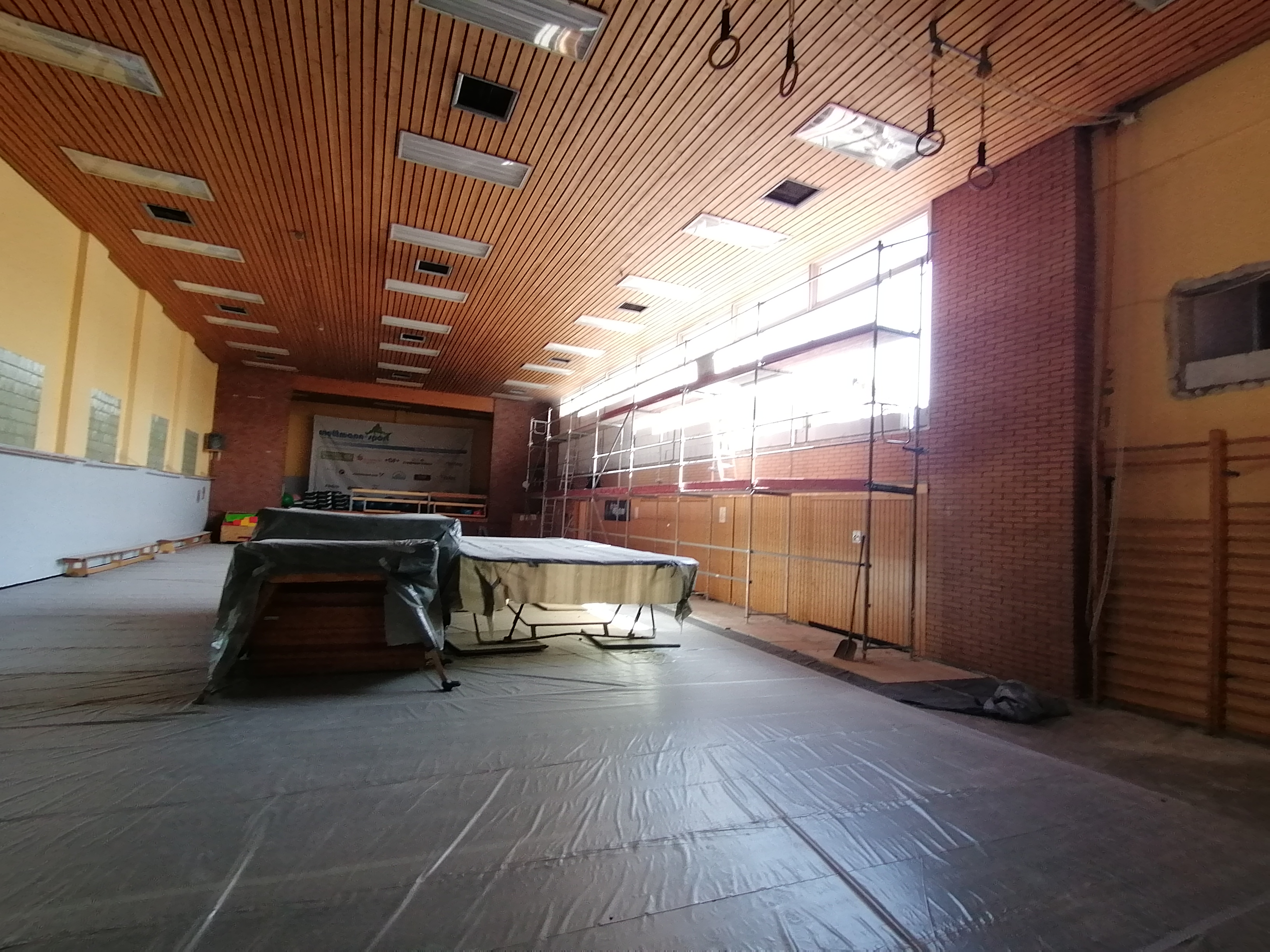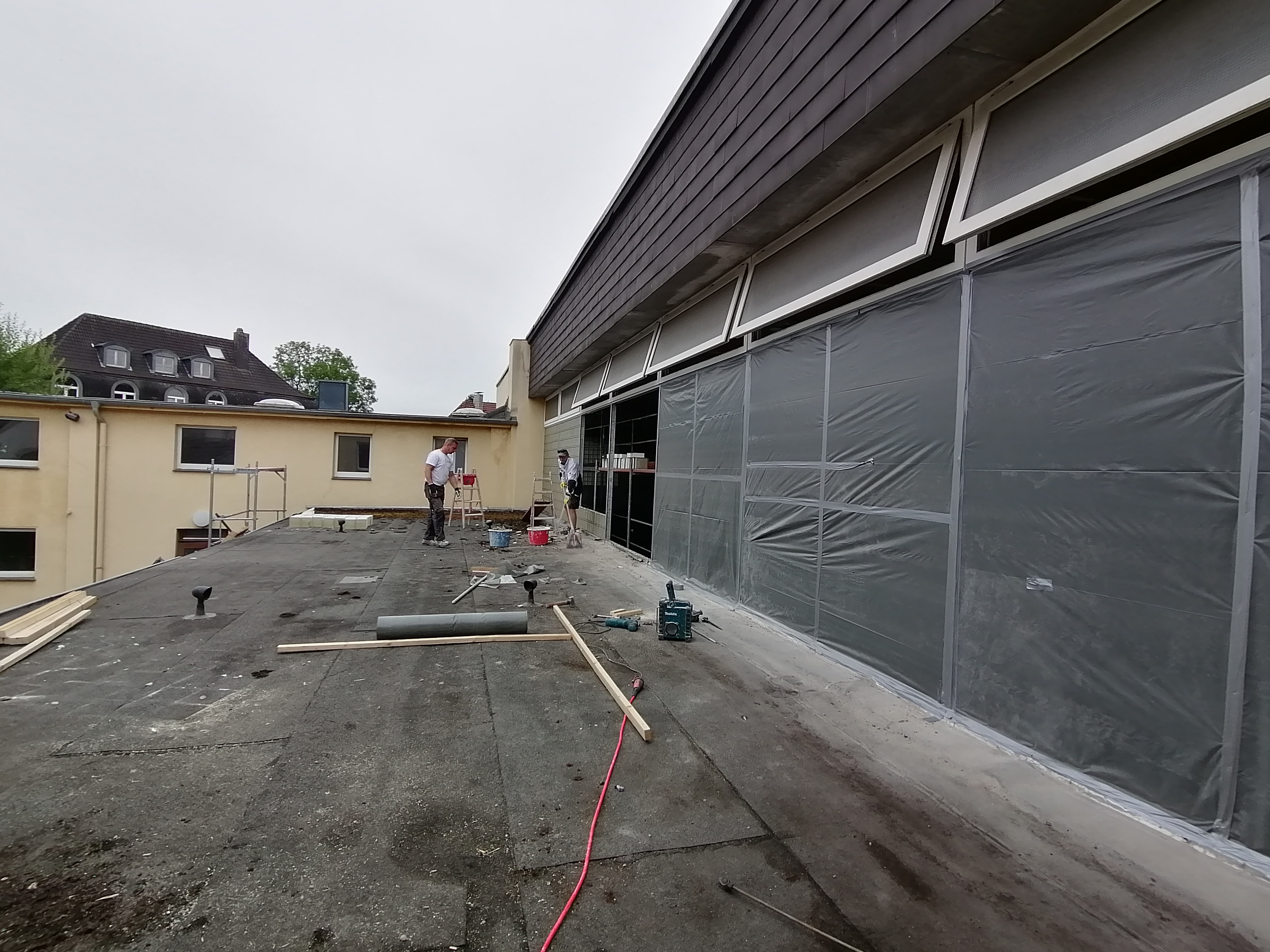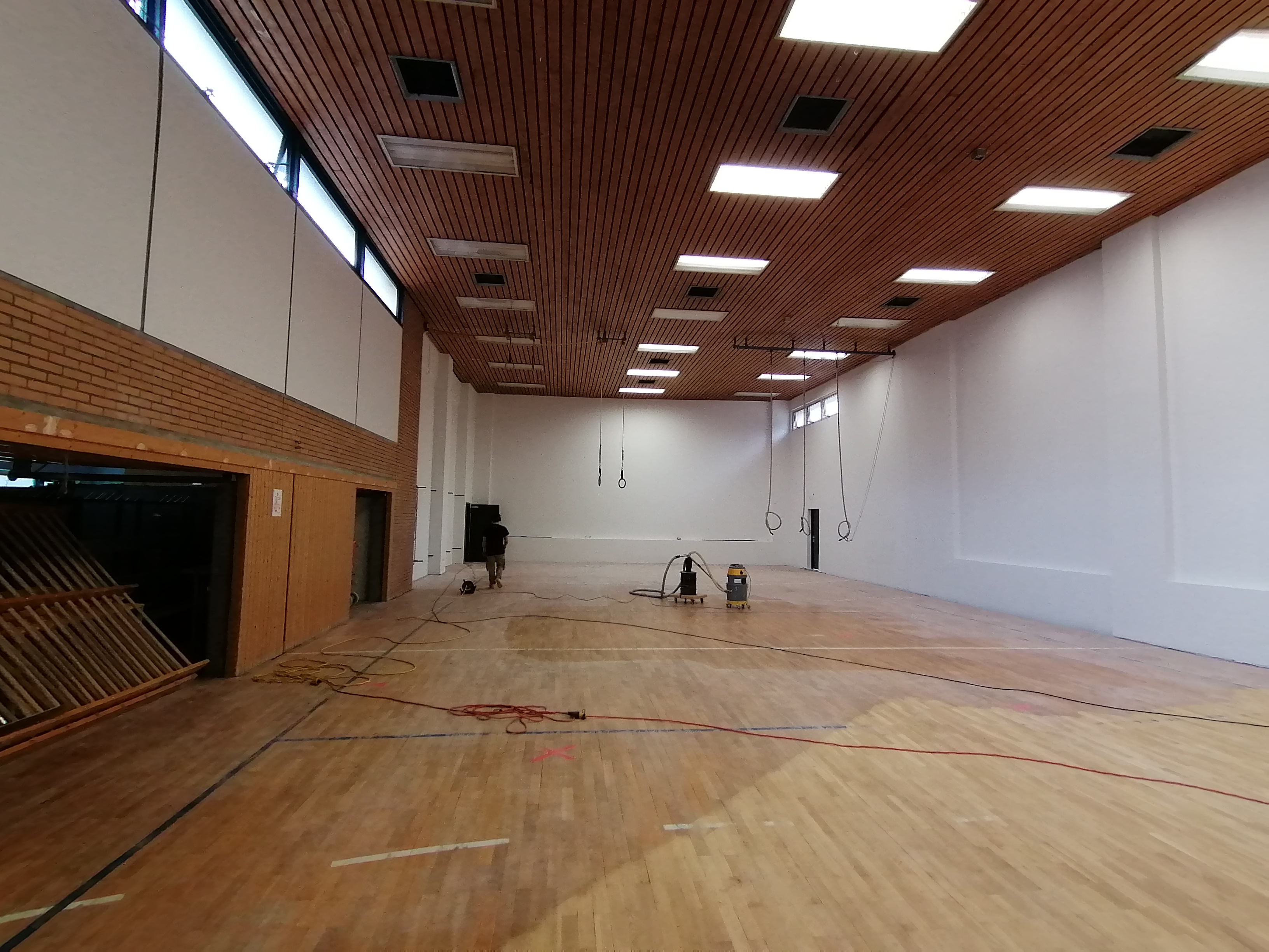 Stand 30.07.2023: Die Arbeiten in der Halle schreiten voran. Nun warten wir noch auf die Lieferung und den Einbau der neuen Fenster. Danach wird die Halle neu gestrichen und gereinigt. Leider liegt uns noch kein Liefertermin vor, so dass wir aktuell davon ausgehen, dass die Nutzung der Halle noch mind. 3 Wochen warten muss.