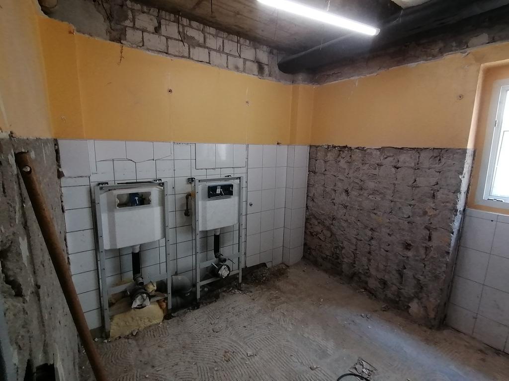 Stand 05.09.2023: Die Lieferung der Materialien dauert leider noch an, so dass die Hallennutzung aktuell nach den Herbstferien geplant ist. Im sanitären Bereich haben die Fliesenarbeiten begonnen.